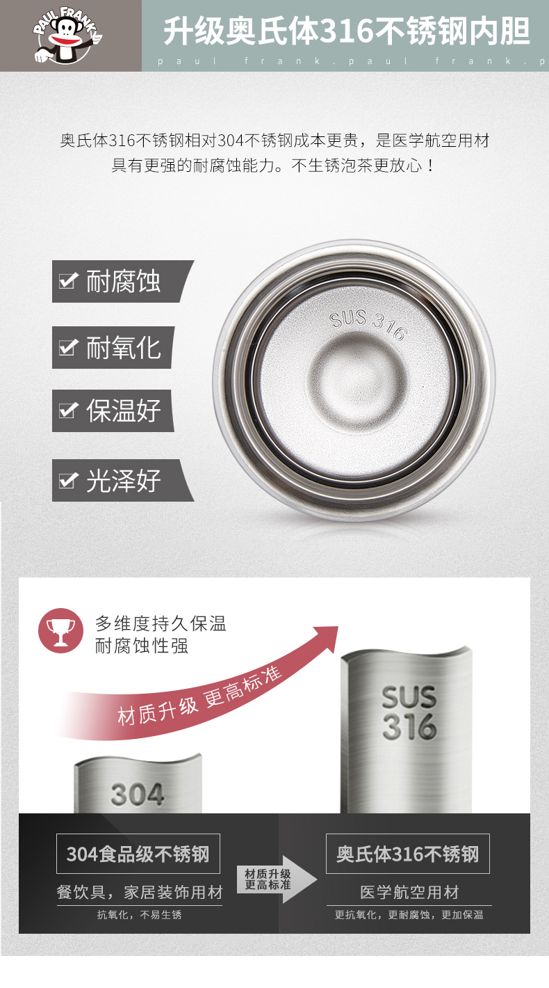 大嘴猴316不锈钢儿童保温杯带吸管两用小学生水杯幼儿园便携水壶