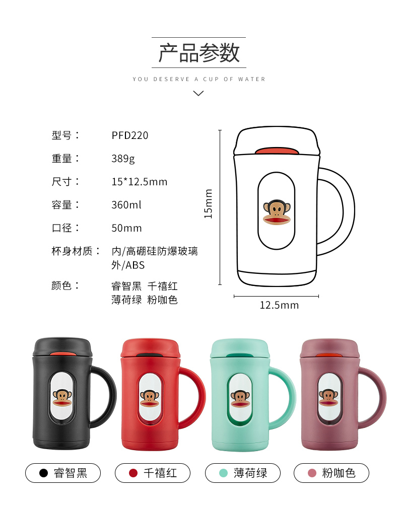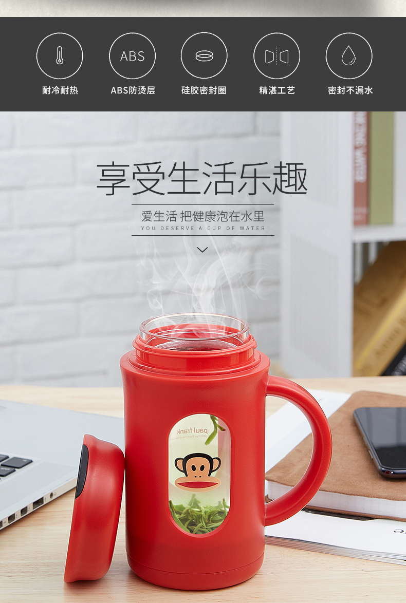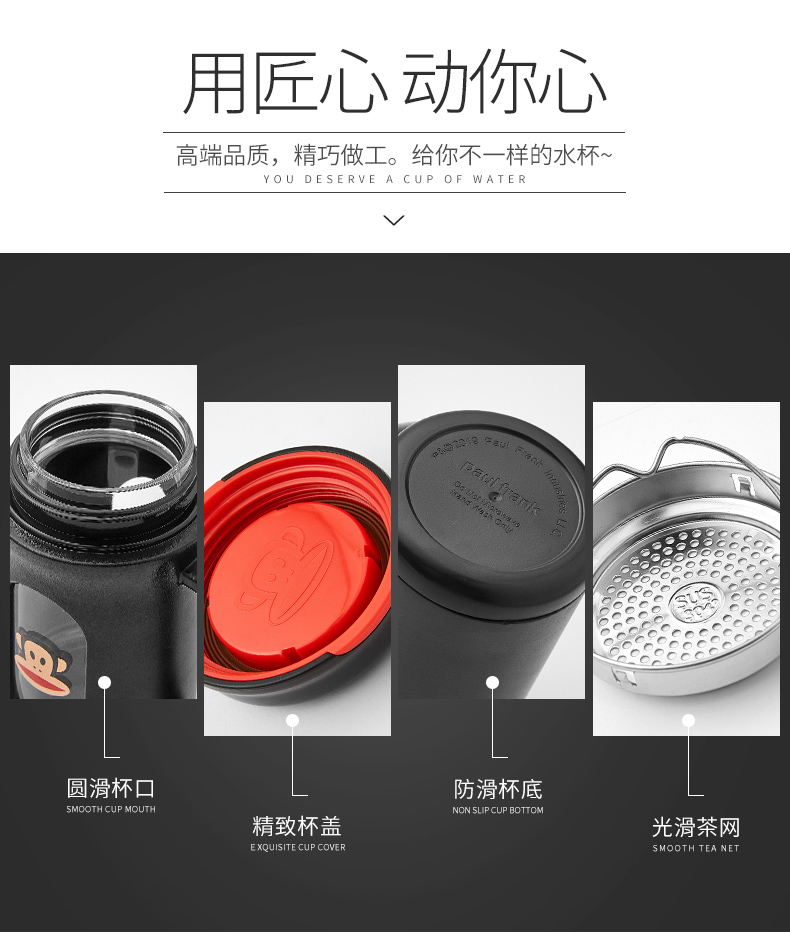 大嘴猴双层隔热防烫玻璃杯办公室女士水杯学生便携车载花茶随手杯