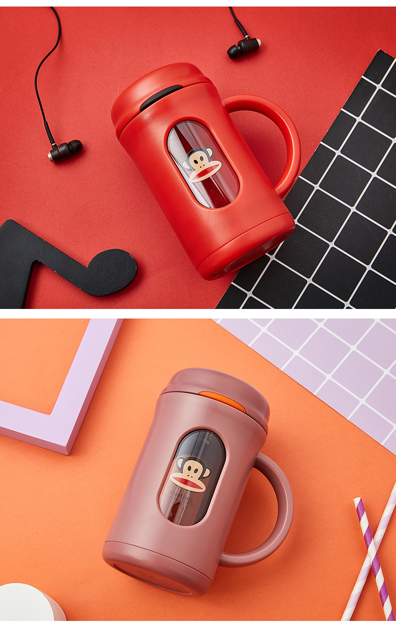 大嘴猴玻璃杯夏季便捷可爱带吸管水杯女生泡茶杯大容量咖啡杯子男