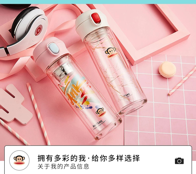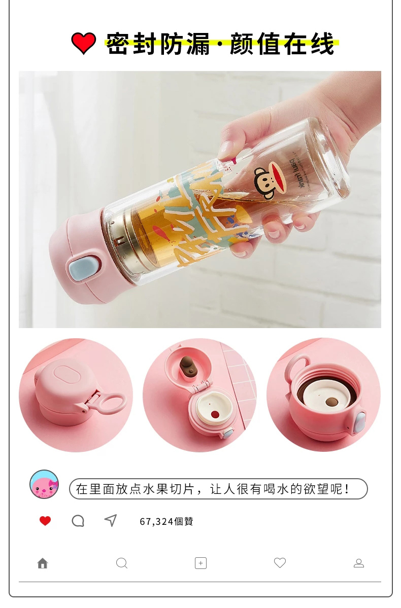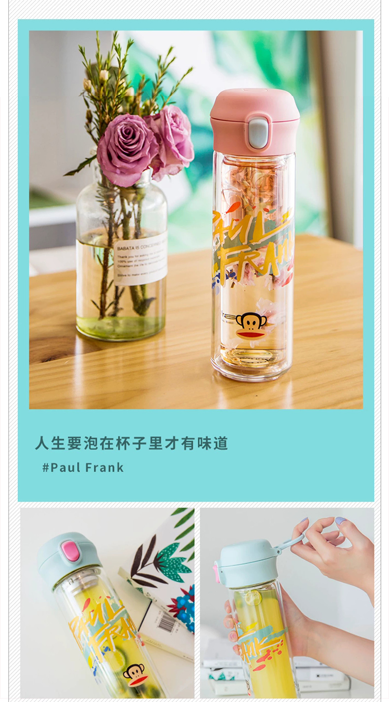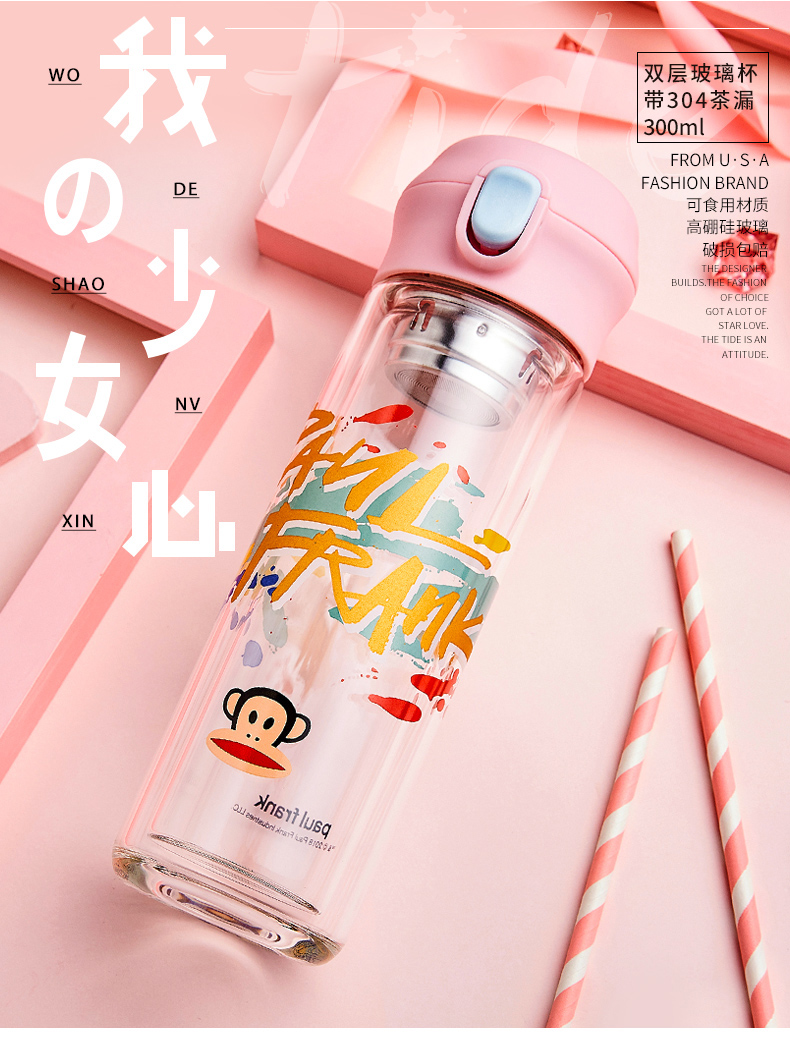 大嘴猴双层隔热防烫玻璃杯办公室女士水杯学生便携车载花茶随手杯