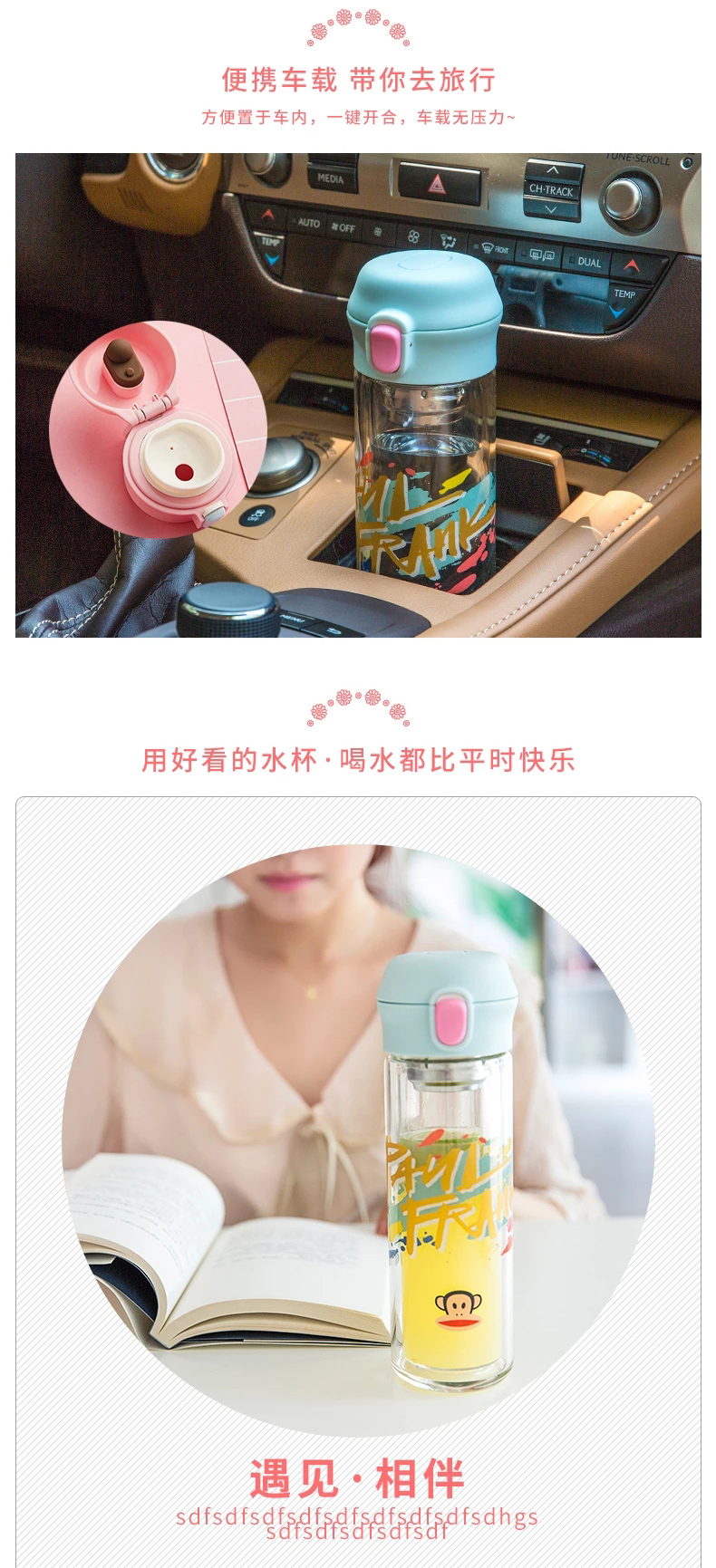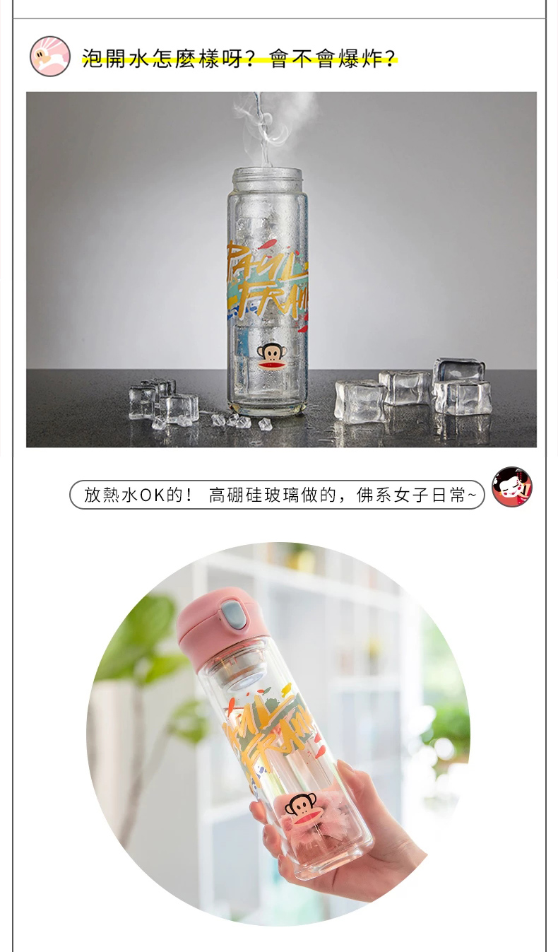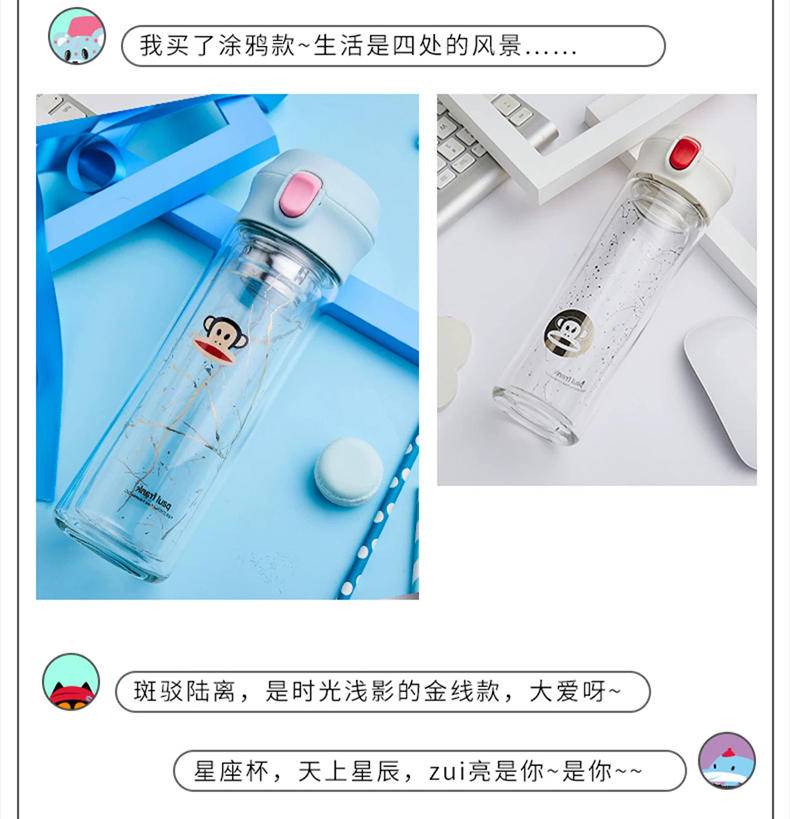 大嘴猴双层隔热防烫玻璃杯办公室女士水杯学生便携车载花茶随手杯