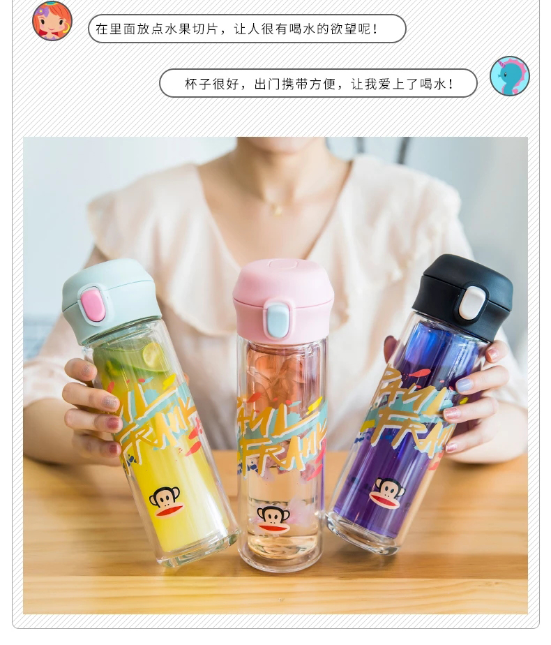 大嘴猴塑料水杯少女tritan防摔随手杯夏季便捷运动户外简约茶漏杯