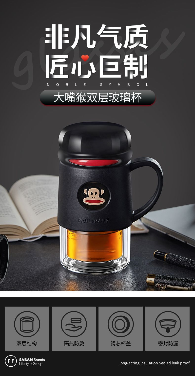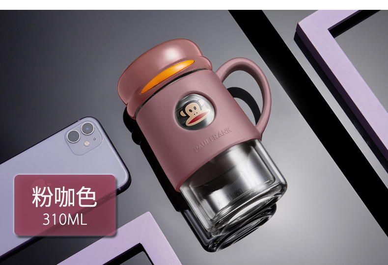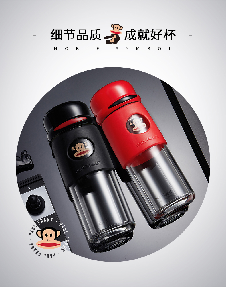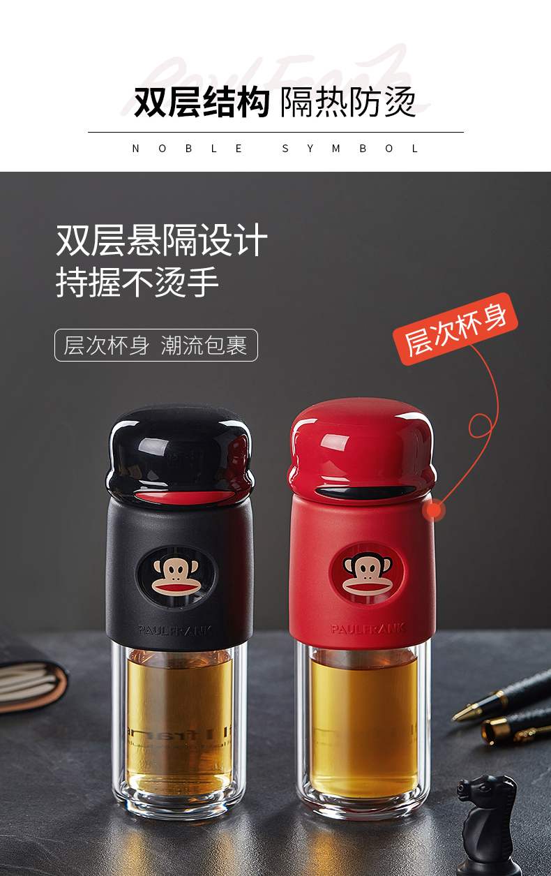 大嘴猴双层隔热防烫玻璃杯办公室女士水杯学生便携车载花茶随手杯
