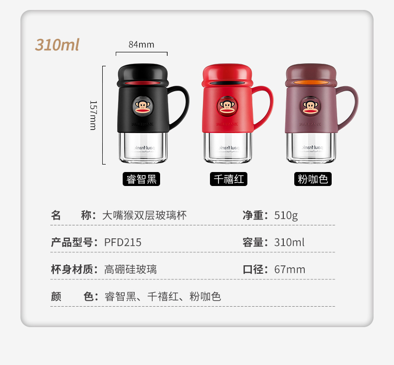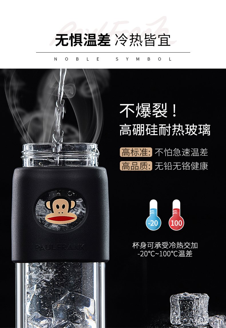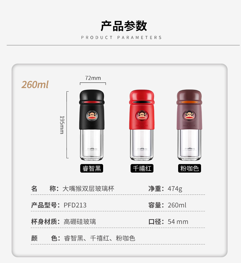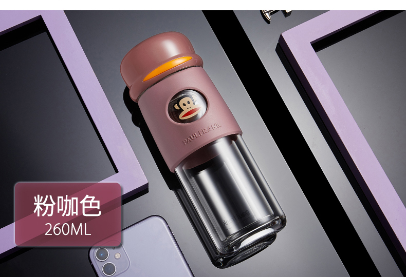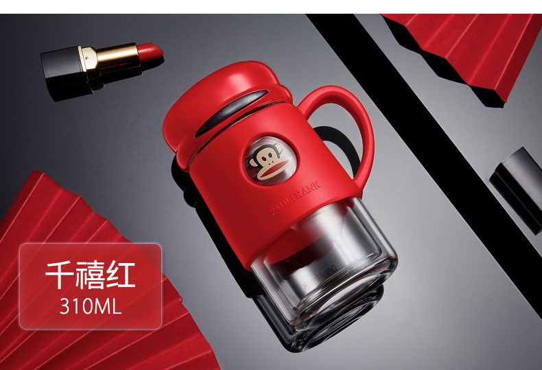 大嘴猴双层隔热防烫玻璃杯办公室女士水杯学生便携车载花茶随手杯