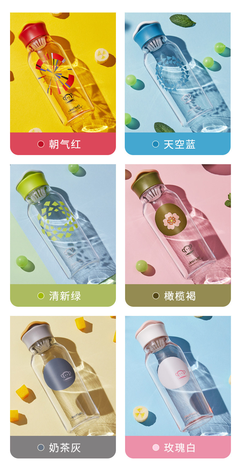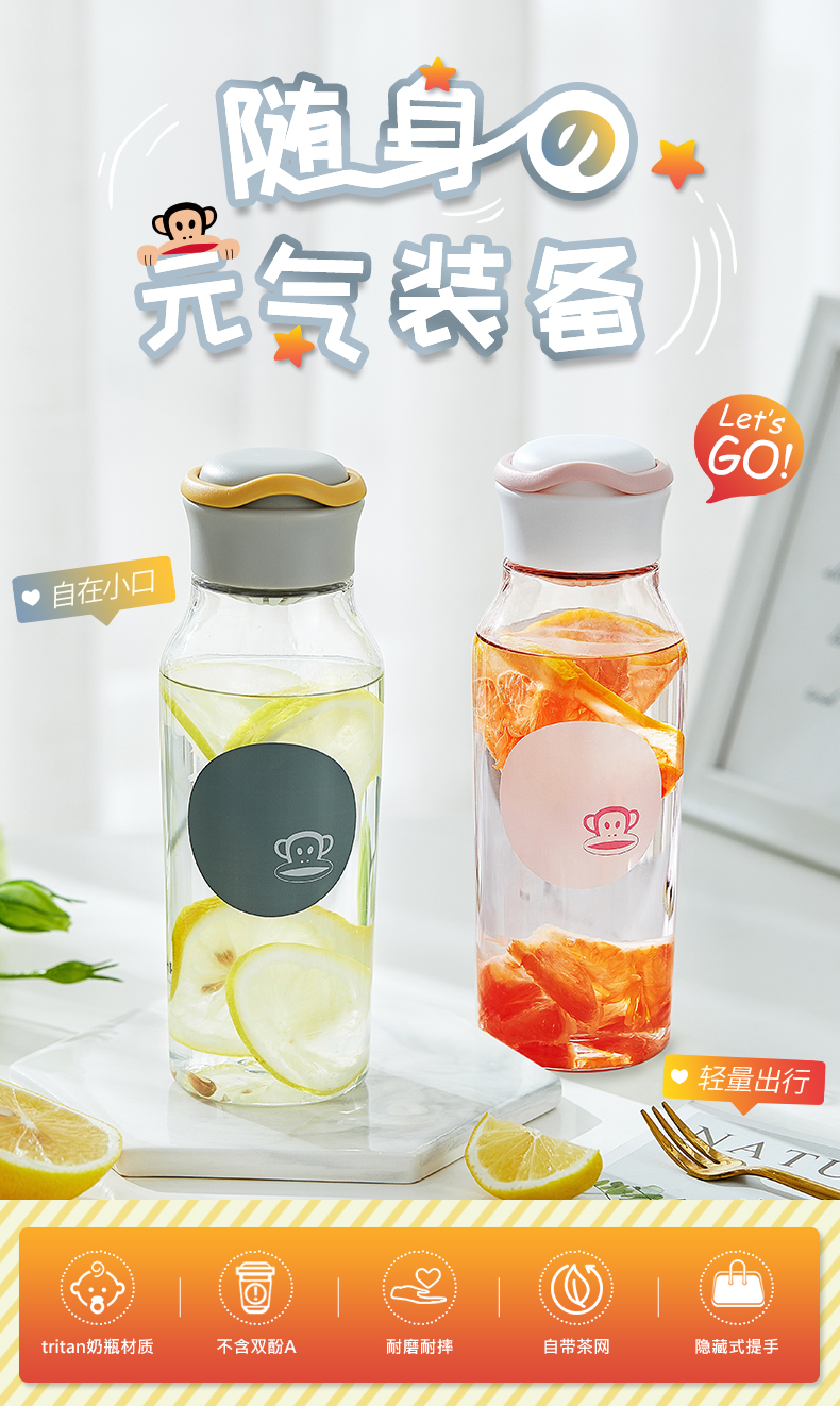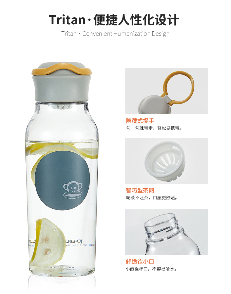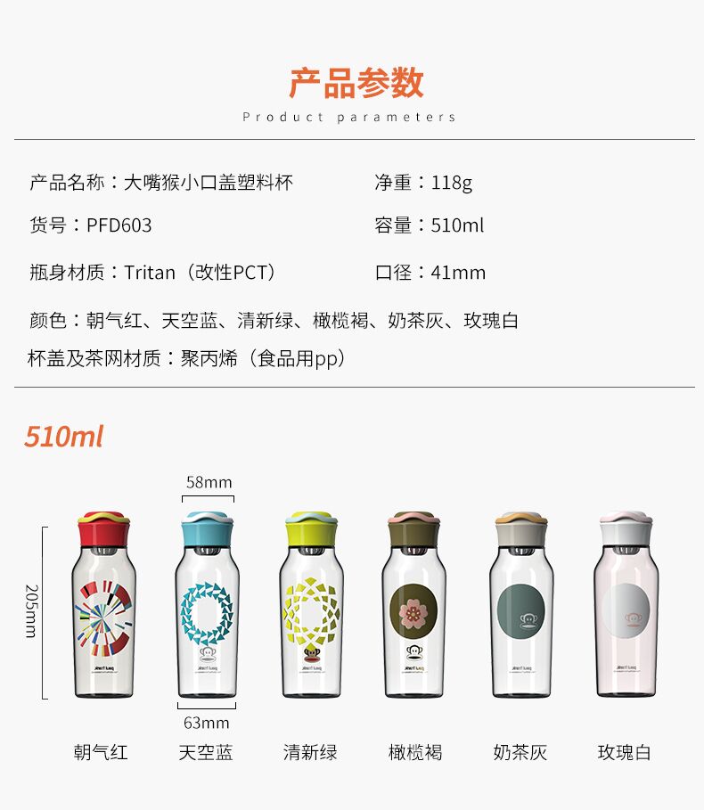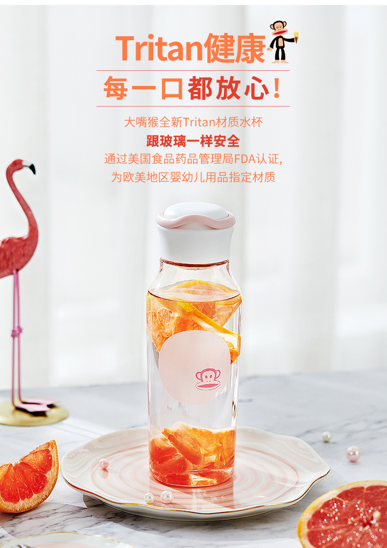 大嘴猴塑料水杯少女tritan防摔随手杯夏季便捷运动户外简约茶漏杯