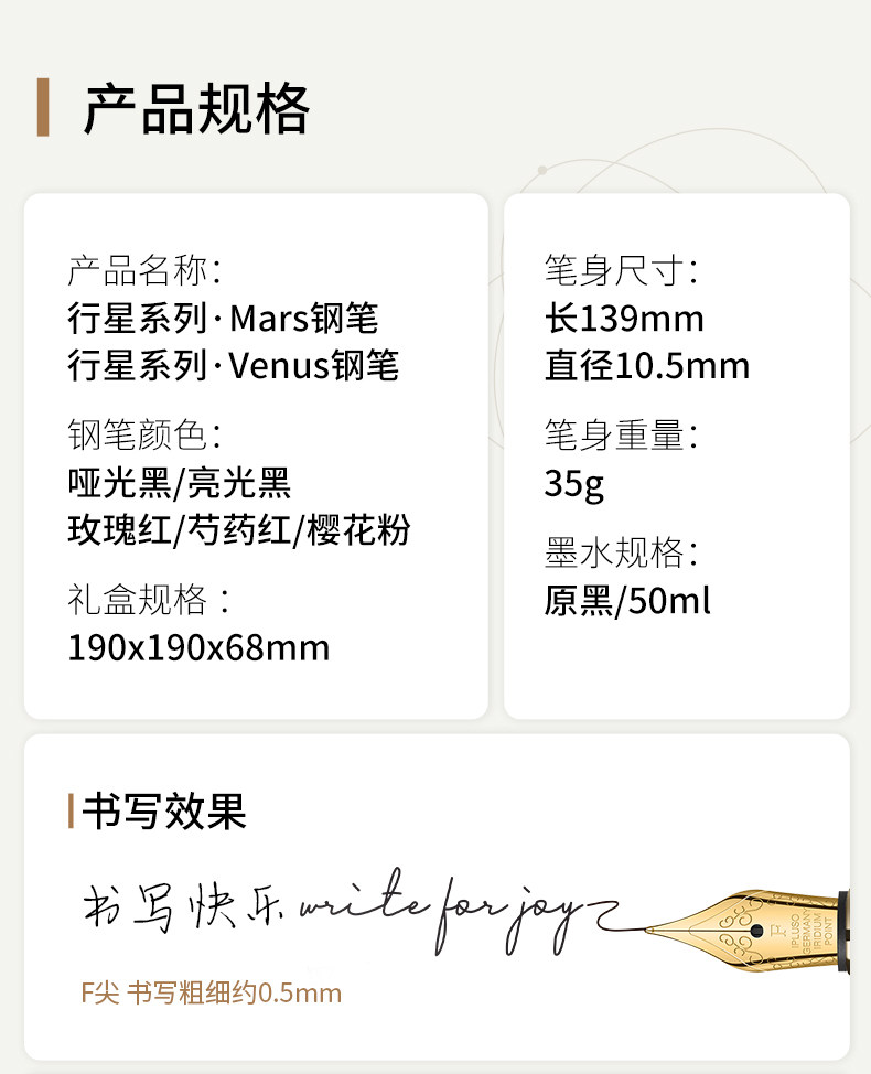 行星系列钢笔礼盒航天文创联名Mars黑金刻字定制情侣对笔男士高档商务办