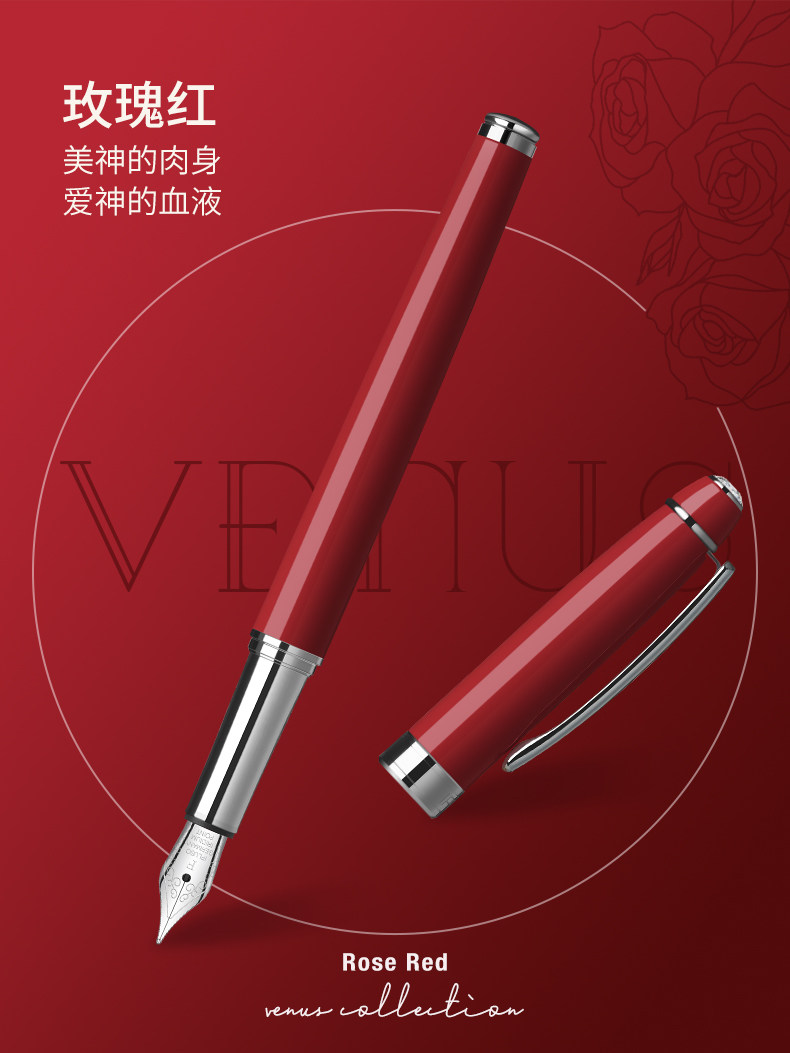 安迪系列钢笔墨水套装创意纪念生日礼玫瑰情人红礼盒高颜值定制钢笔女生