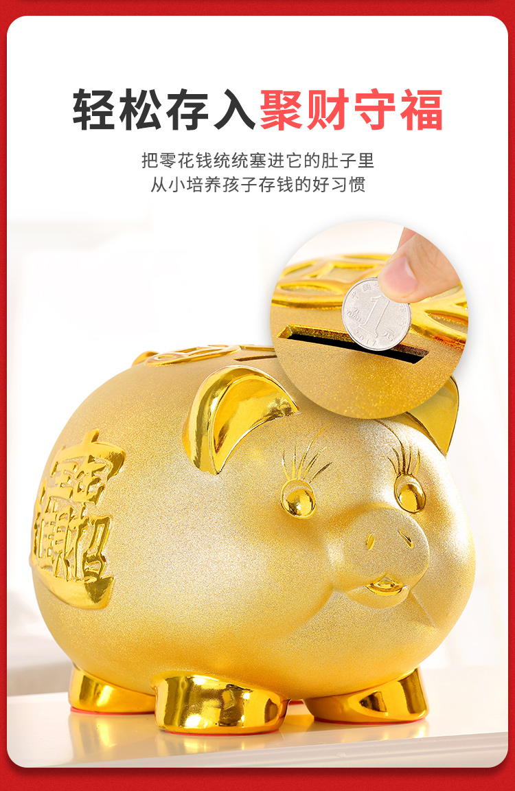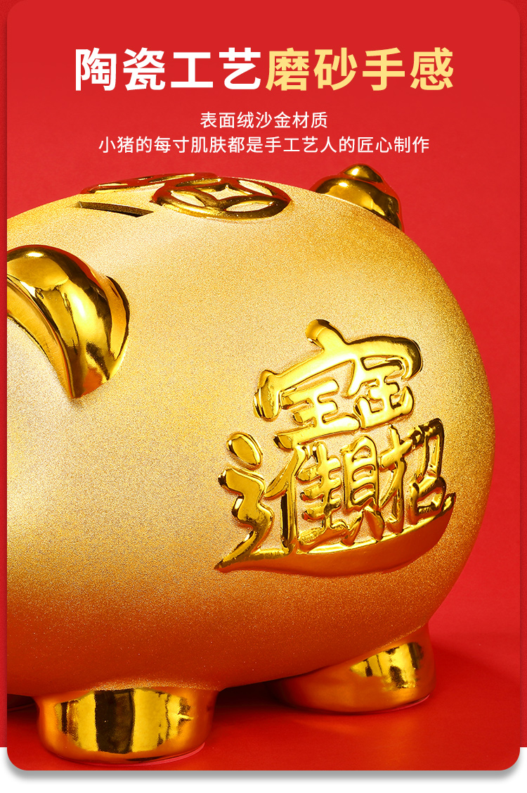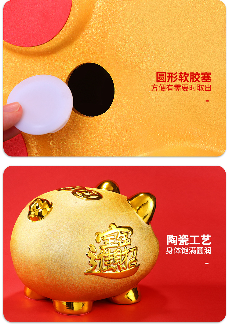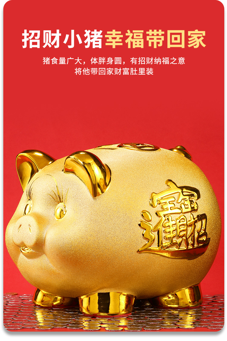 镀金招财进宝财神爷陶瓷佛像摆件创意储蓄罐存钱罐装饰品摆设家居