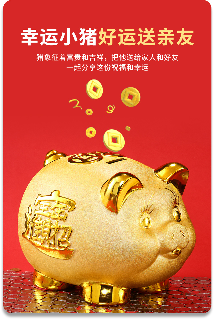 礼家饰金猪招财摆件猪年新春贺岁礼品客厅酒柜装饰年终定制纪念品