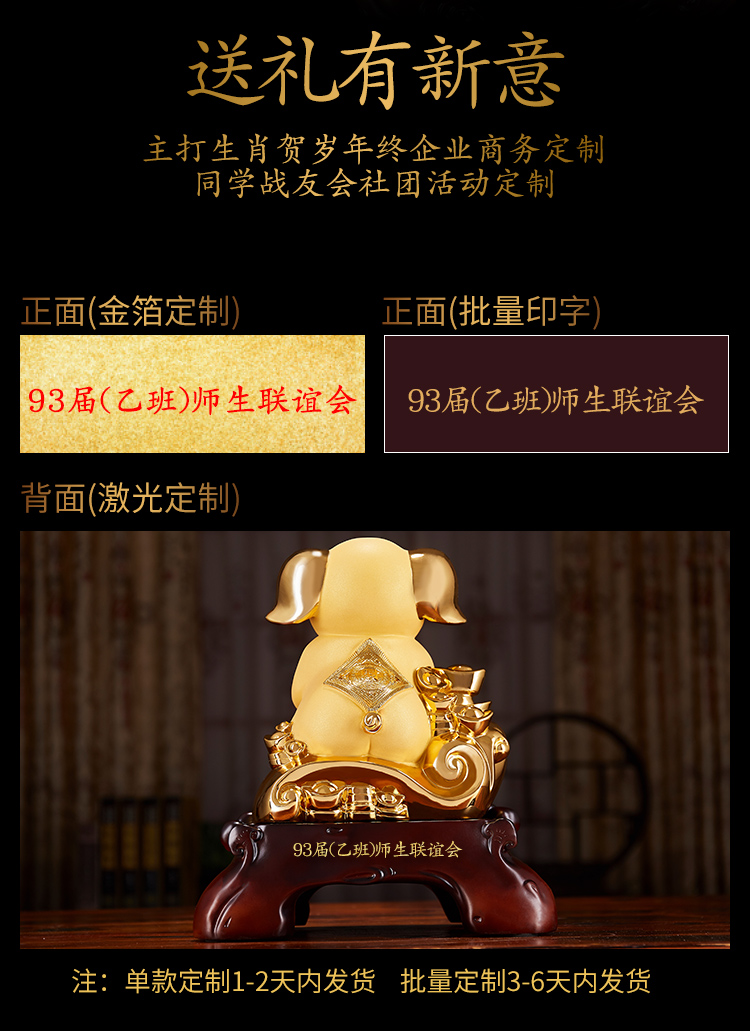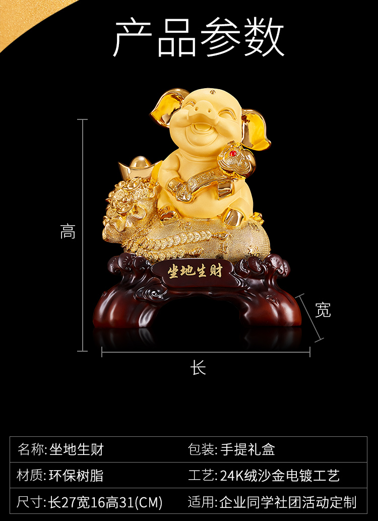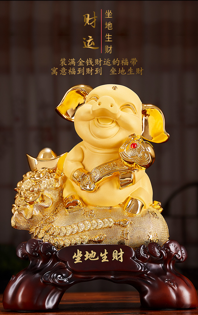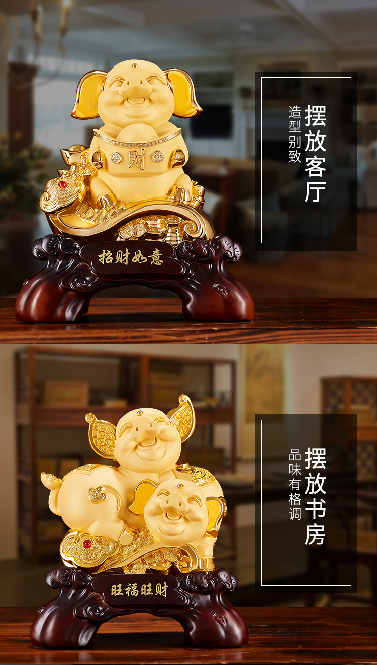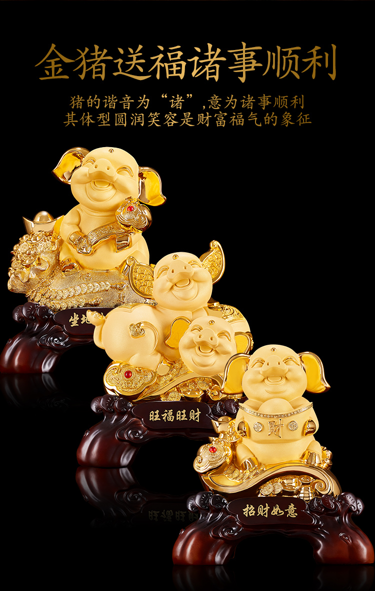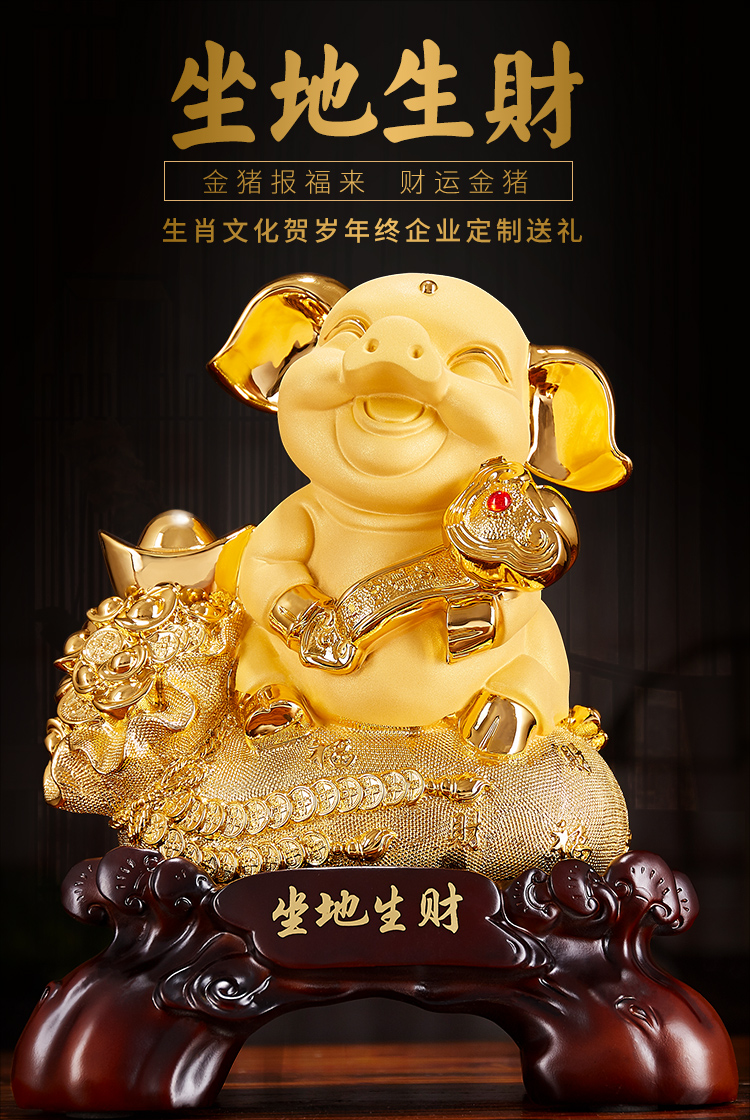 礼家饰金猪招财摆件猪年新春贺岁礼品客厅酒柜装饰年终定制纪念品