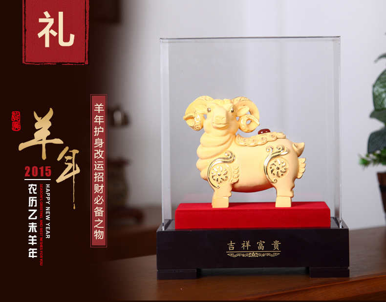 羊摆件三羊开泰贺岁生肖工艺品绒沙金领头羊客厅办公室家居装饰品