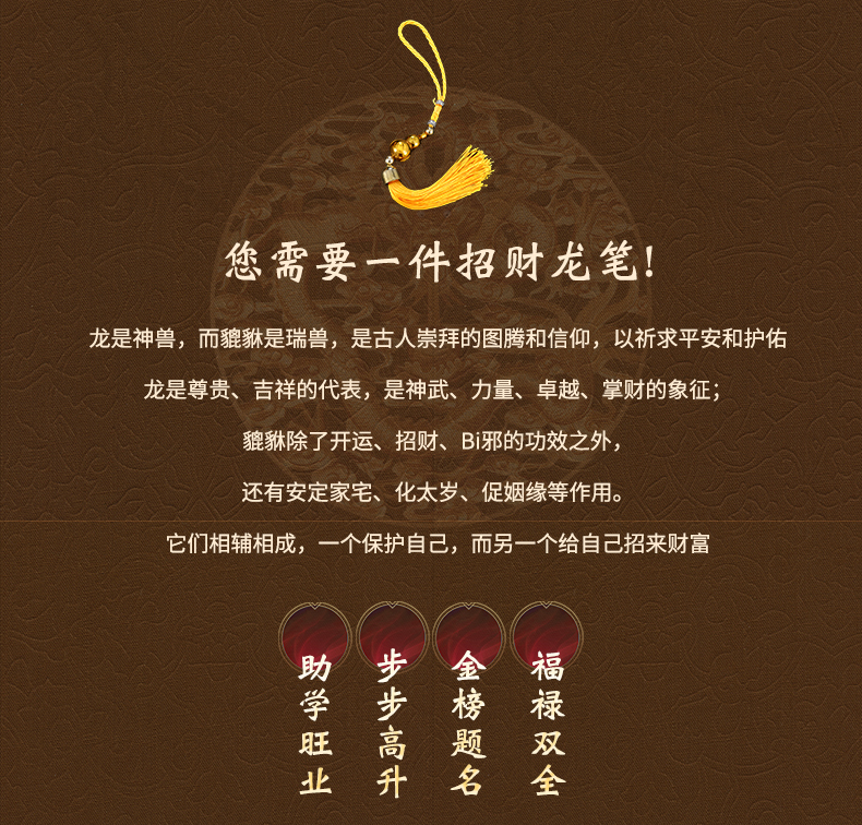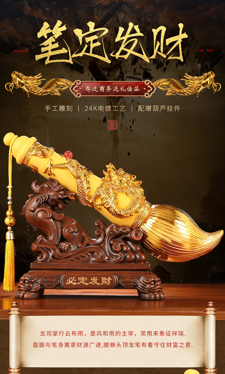 必定发财笔办公室招财貔貅摆件店铺开业搬迁新家酒柜办公室装饰品
