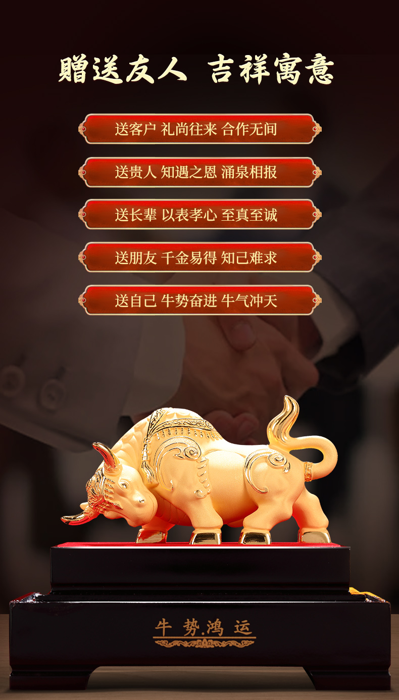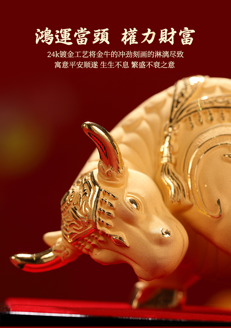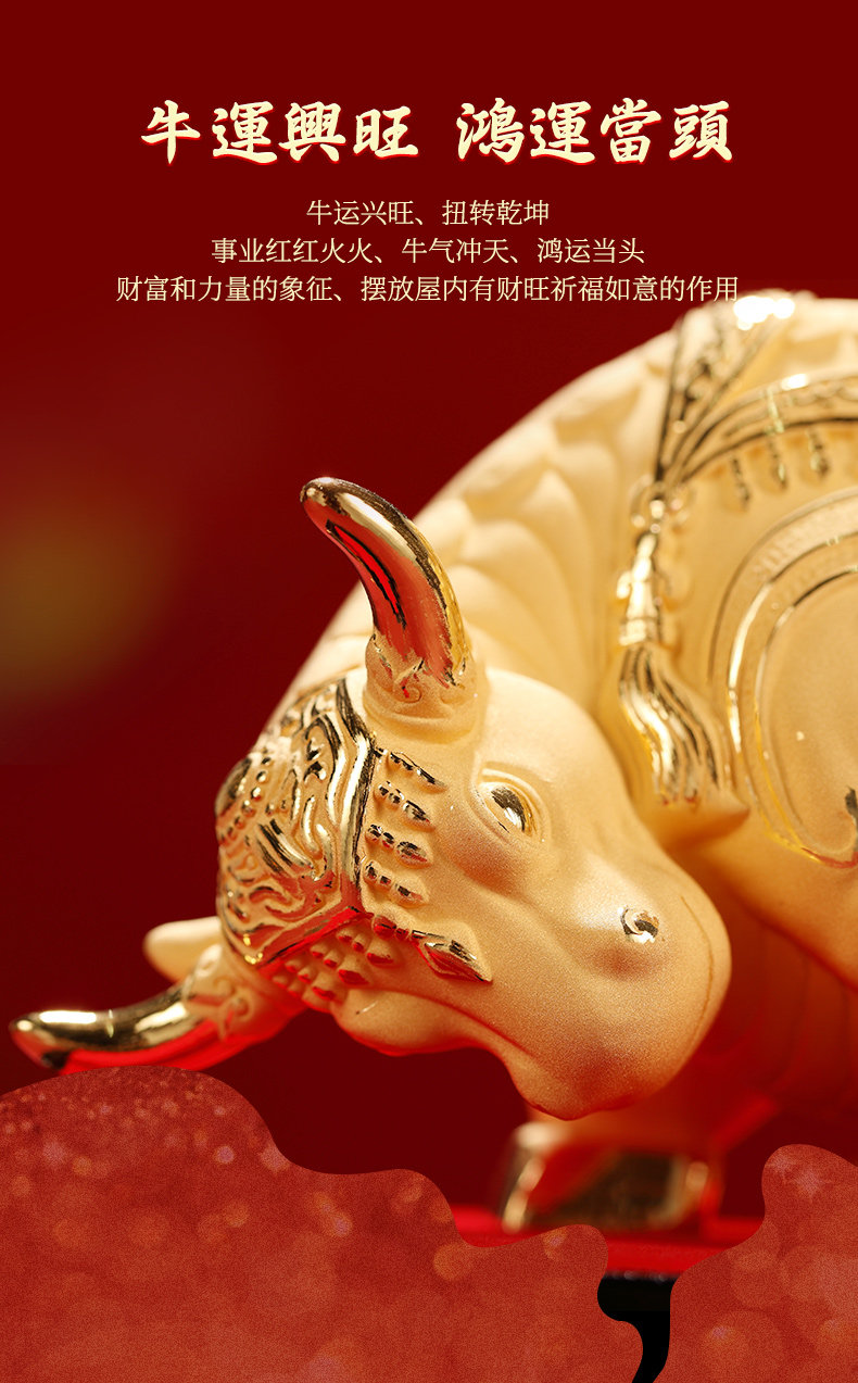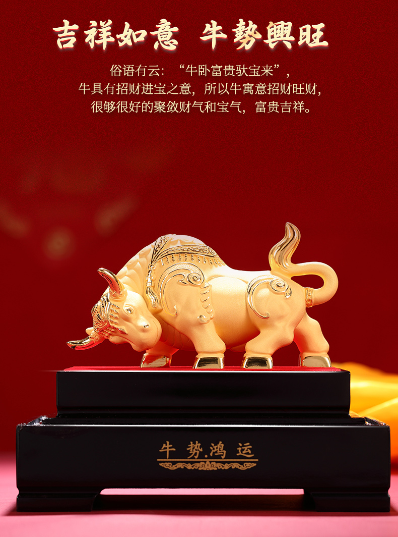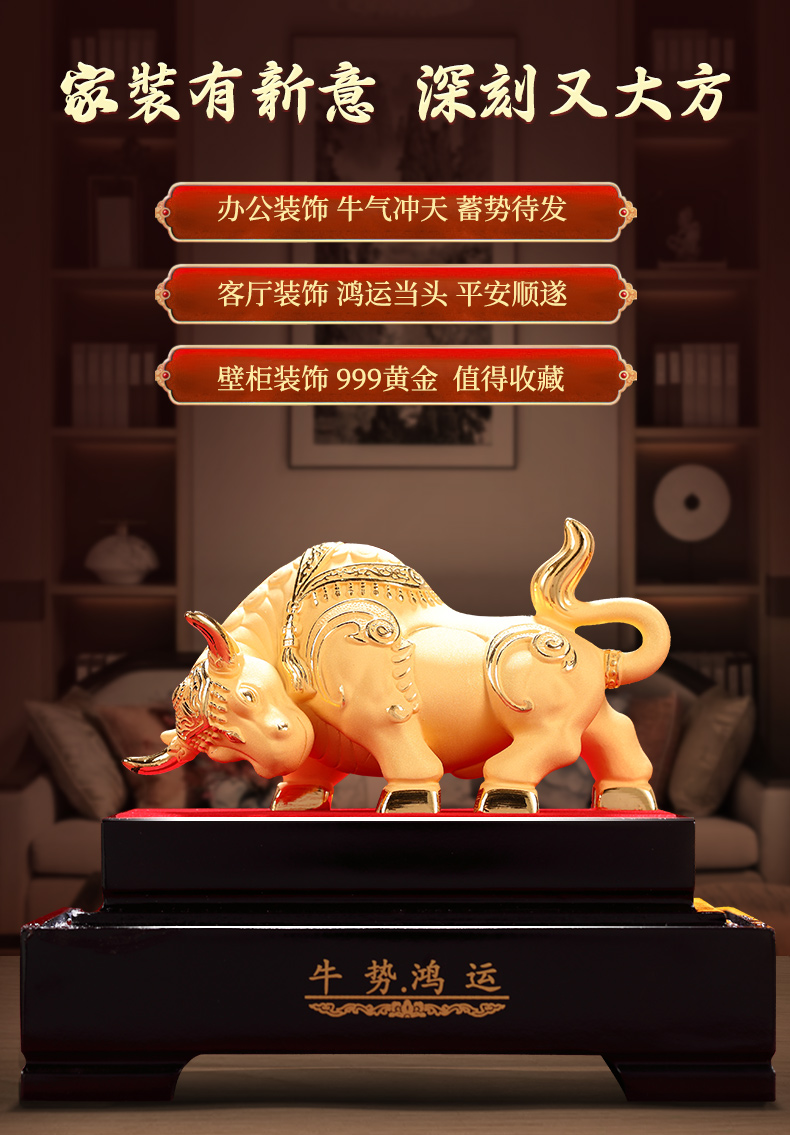 绒沙金华尔街牛招财摆件鸿运金牛办公室桌面装饰品家居酒柜工艺品