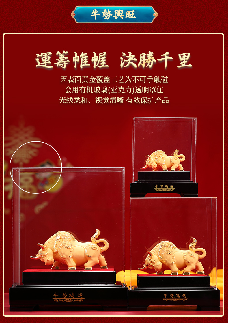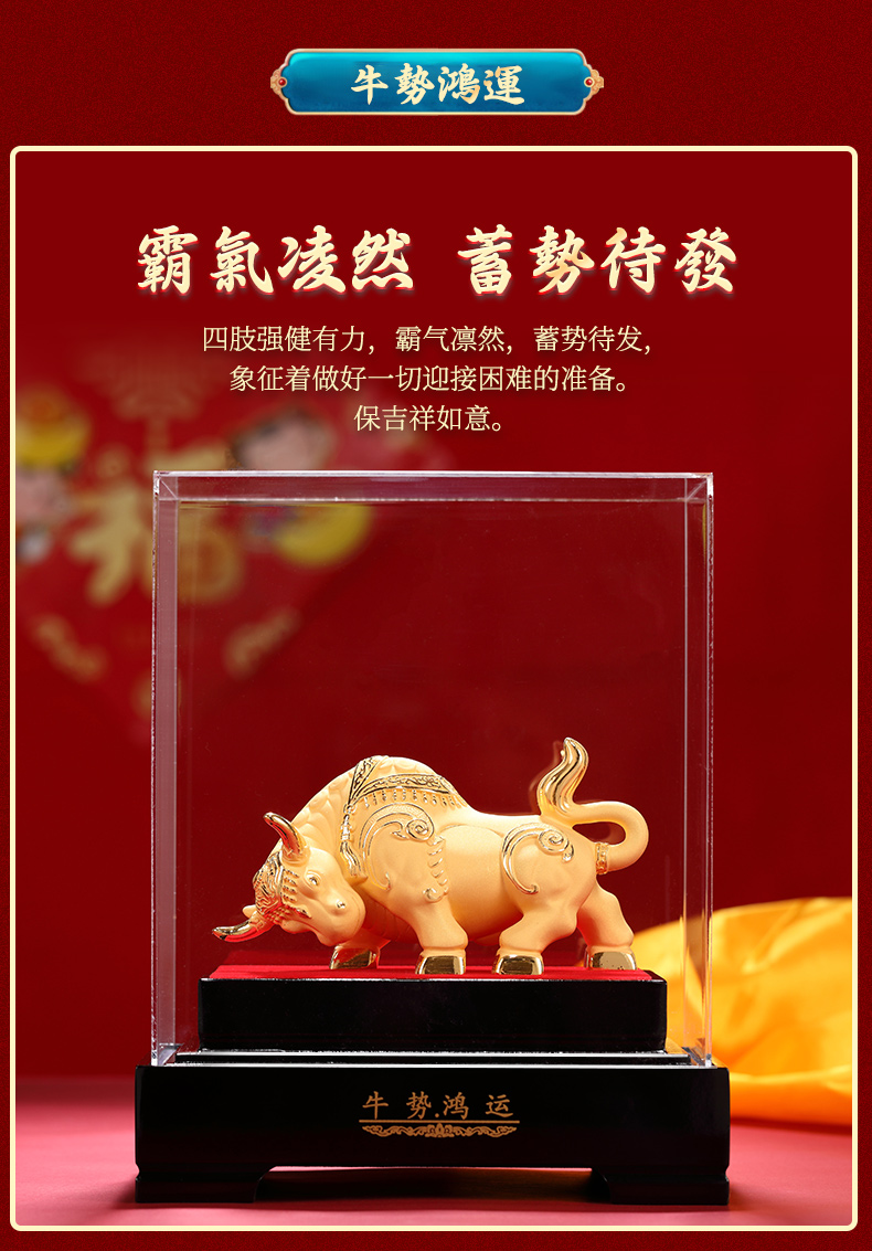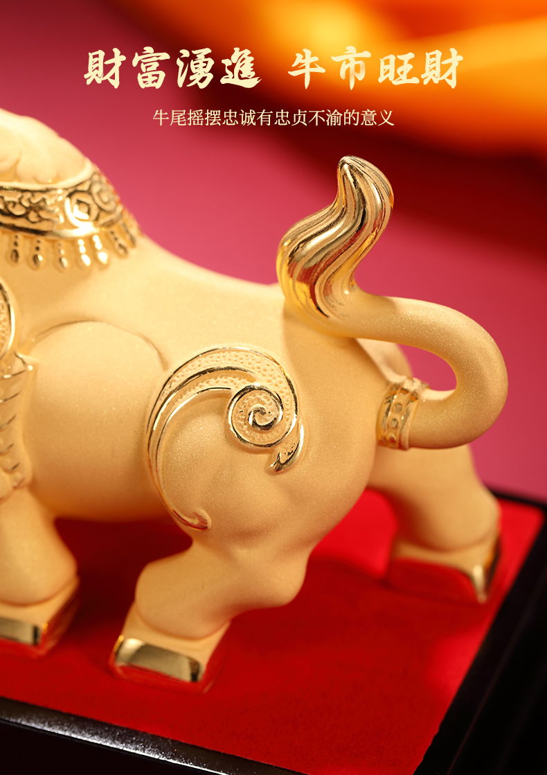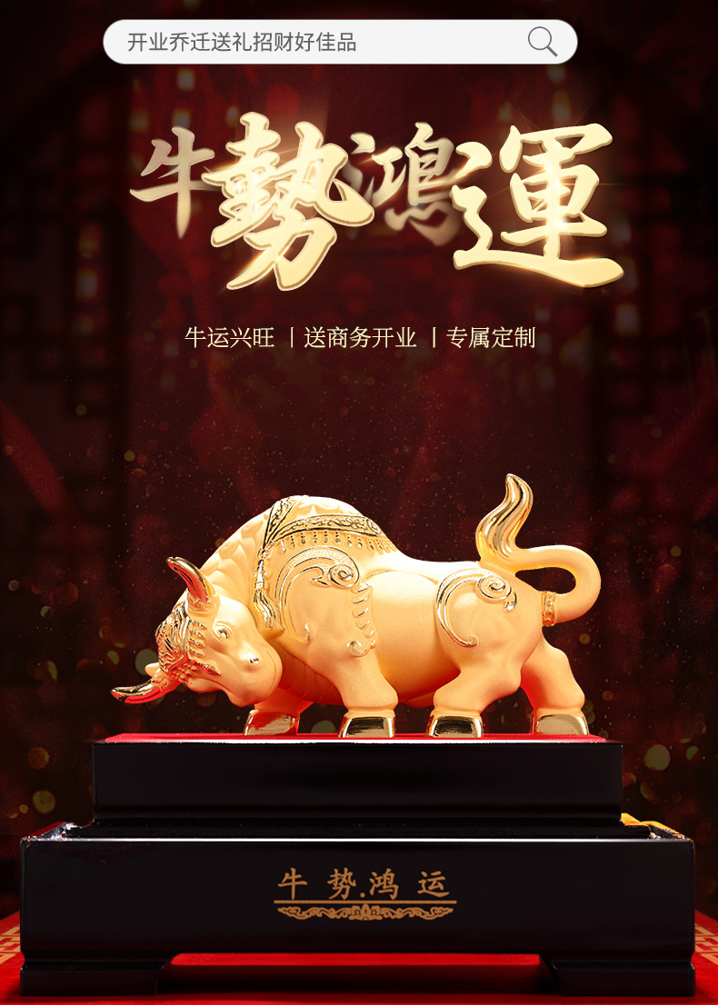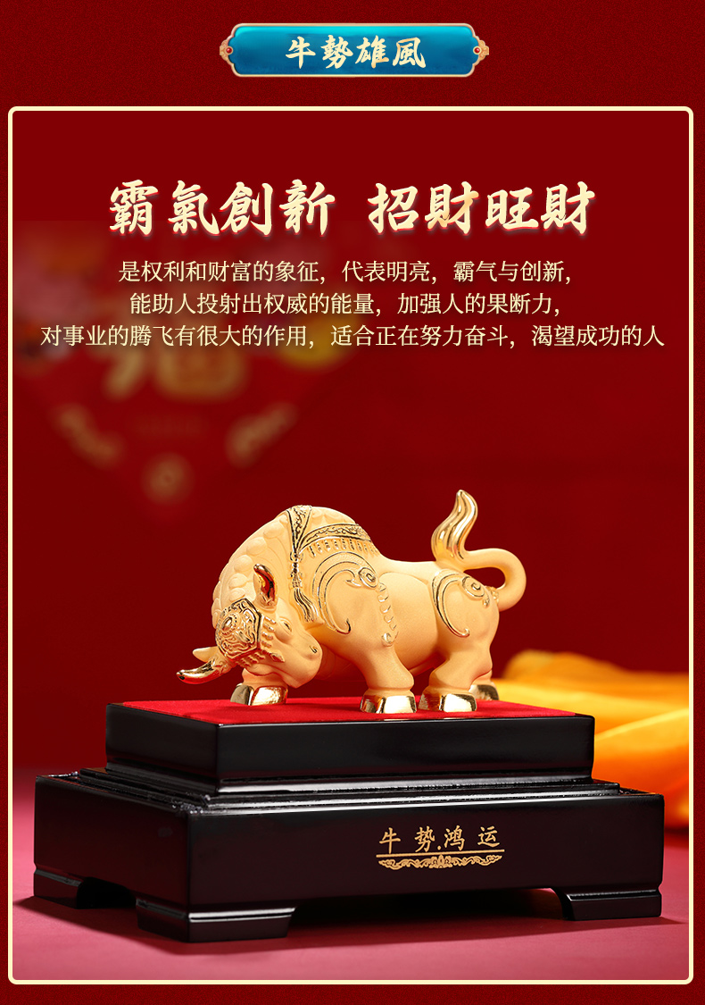 绒沙金华尔街牛招财摆件鸿运金牛办公室桌面装饰品家居酒柜工艺品