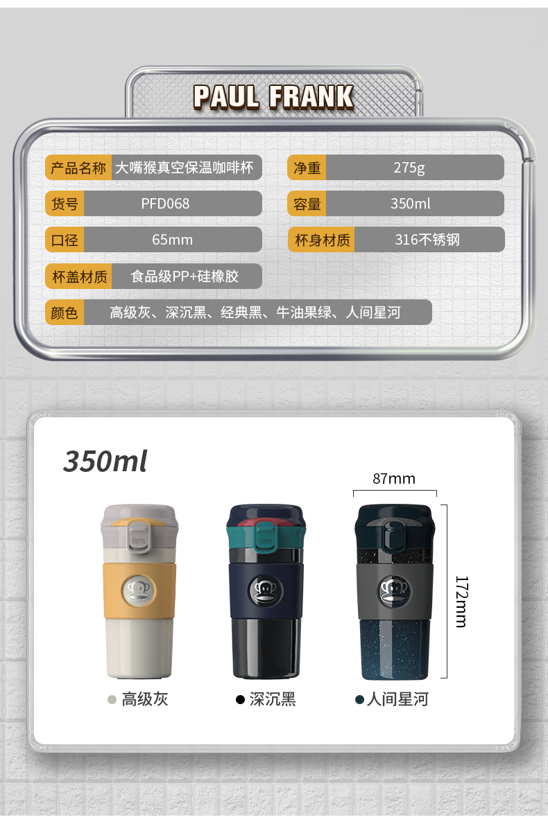 大嘴猴316不锈钢儿童保温杯带吸管两用小学生水杯幼儿园便携水壶