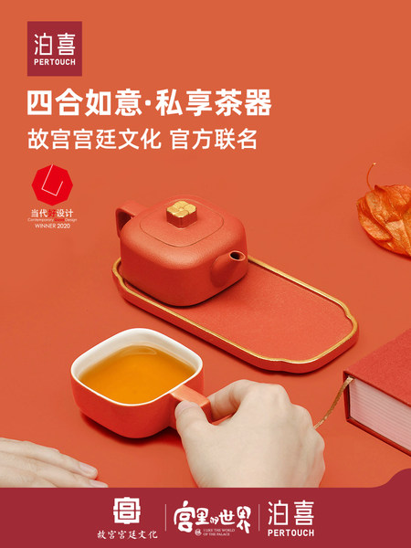 故宫宫廷文化泊喜四合如意茶壶套装茶具套装礼盒装旅行快客杯小套